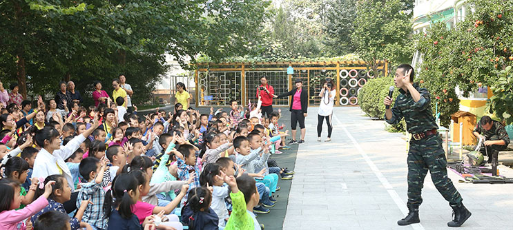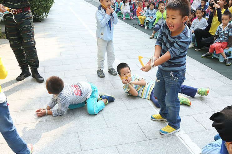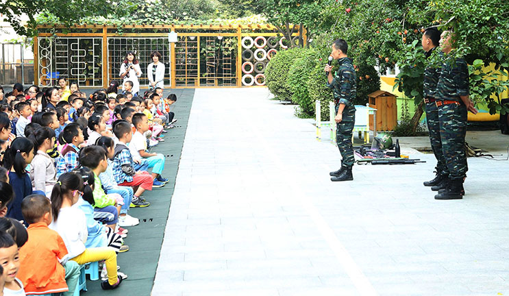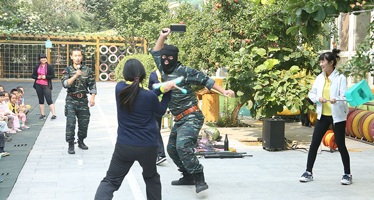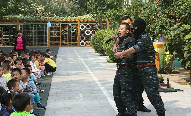 巨峰团队采用真实生动的实战演练和浅显易懂的防恐知识讲解,为清友园幼儿园全体师幼及与会的家长一起体验了安全的重要性,以及保障安全的必要心理和身体素质。
