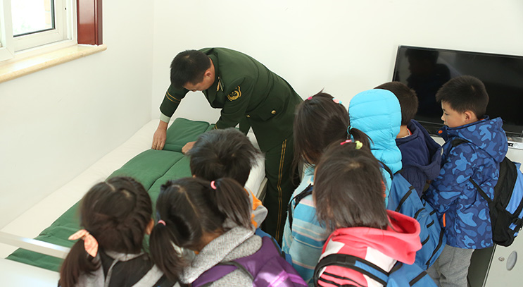孩子们还参观了战士们的宿舍,观察物品的摆放,体验整洁有序的作风,学习一丝不苟的精神。