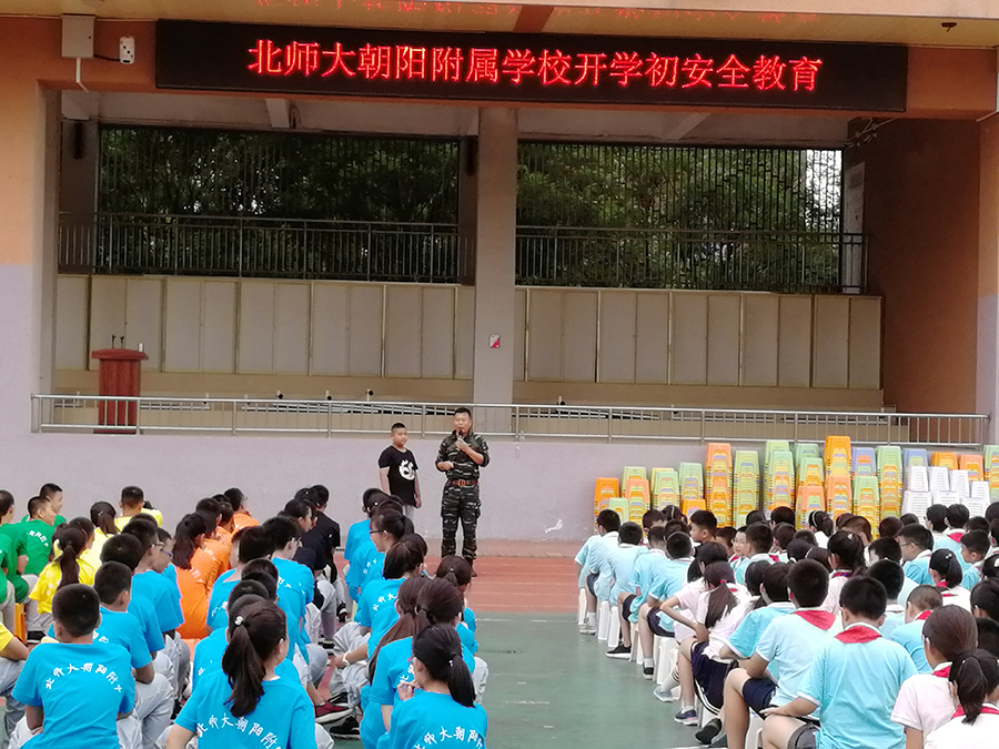2018年8月30号下午5时许,北师大朝阳附属学校邀请巨峰特训团队举办开学初安全教育活动。全体师生684余人共同参加此次安全教育培训活动。
