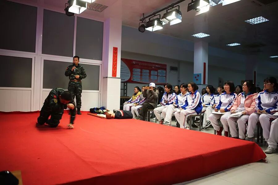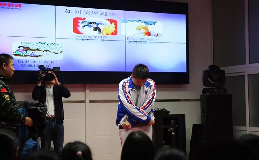 首先,由巨峰特训的教官讲解消防安全的基础知识,并邀请同学们上台进行体验式教学。让同学们在愉快的氛围中,学到安全知识保护自己。