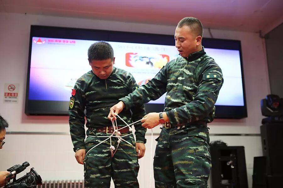 其次,教官又讲解了如何制作简易索降安全带与索降扣。